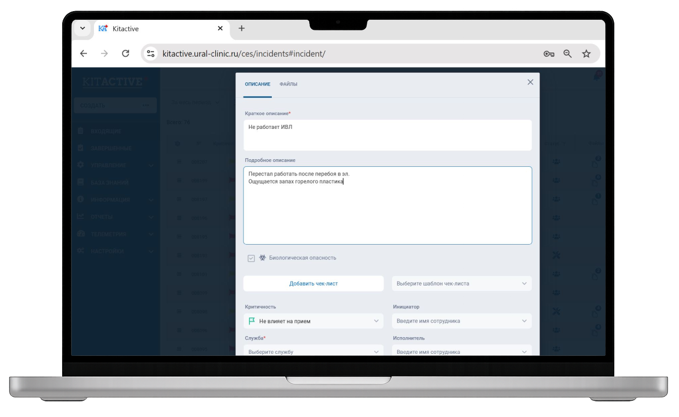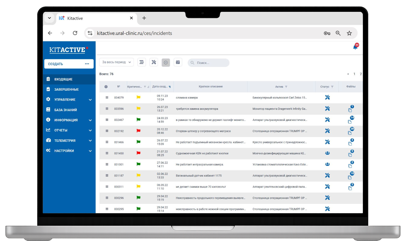 KITACTIVE — программное обеспечение для автоматизации процессов учета и обслуживания медтехники, дистанционного контроля технического состояния, через формирование ранних сигналов о неисправностях, прогнозной и превентивной аналитики о состоянии оборудования.